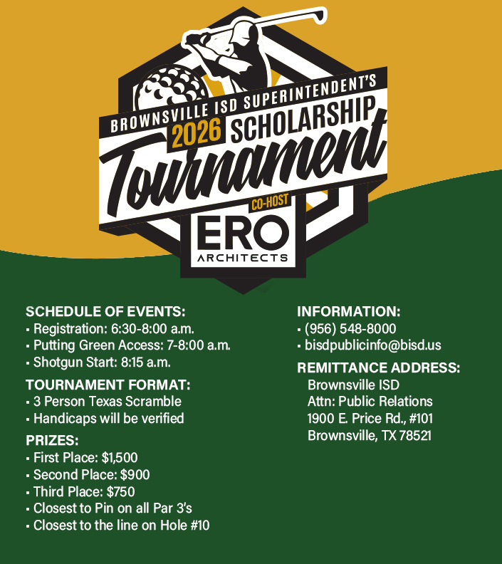 On behalf of River Bend Golf Course, thank you to the Brownsville Independent School District for allowing us to host the Superintendent’s Scholarship Golf Tournament 2026. We are honored to support this important event, and we look forward to continuing our partnership to benefit BISD students.